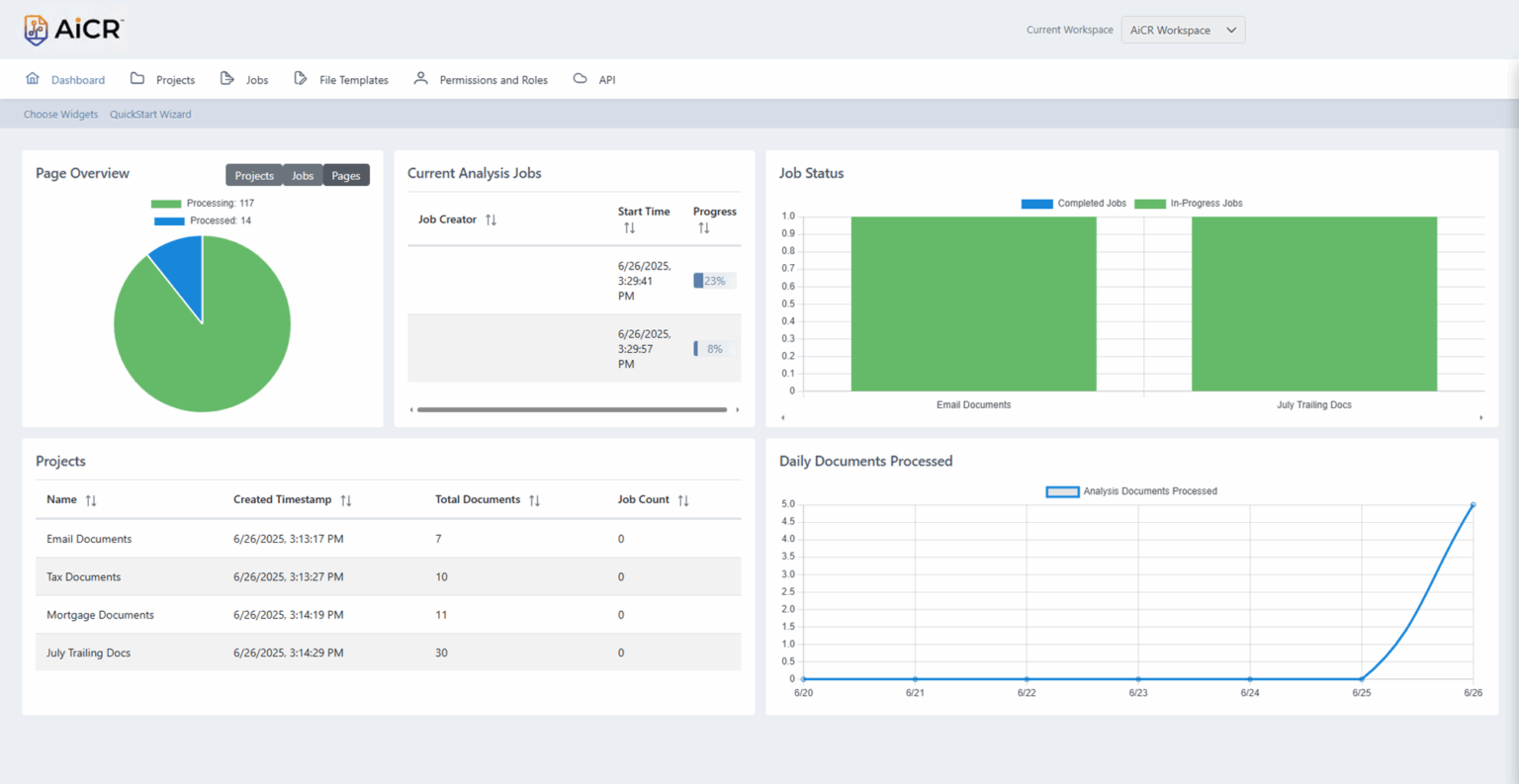 AiCR is an intelligent document processing platform that automates mortgage document review from upload to delivery.